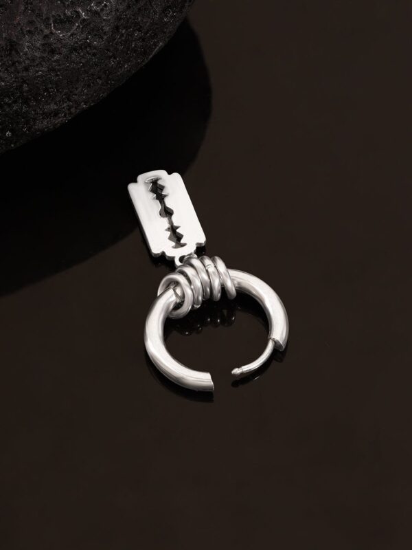 Earrings : Elevate your edgy style with this men’s stainless steel earring featuring a sleek razor blade charm. Its silver-plated finish is tarnish-free and waterproof, ensuring lasting durability and bold appeal. Occasion : Bring your style to a whole new level with this handcrafted piece of jewellery. When you’re celebrating a special Occasion : – a birthday, wedding, or personal milestone – this piece adds that extra something that makes us feel special and looking our best. Material : & Care Dimension : Size : Length : 3.5 cm, Width : 0.7 cm Material :Stainless Steel Net Weight: 2.75 Gram Net Quantity: 1 Earrings Care Label : It is advisable to avoid contact with water and organic chemicals i.e. perfume sprays. Store jewellery in airtight box. After use, wipe the jewellery with soft cotton cloth.