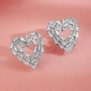 Earrings : Add romance to your outfit with these rhodium-plated heart-shaped stud earrings, studded with cubic zirconia. Occasion : Bring your style to a whole new level with this handcrafted piece of jewellery. When you’re celebrating a special Occasion : – a birthday, wedding, or personal milestone – this piece adds that extra something that makes us feel special and looking our best. Material : & Care Dimension : Length : 2.3 cm, Width: 2 cm Net Weight: 7.4 g Net Quantity : 1 Pair Of Earrings Material :Brass Care Label : It is advisable to avoid contact with water and organic chemicals i.e. perfume sprays. Store jewellery in airtight box. After use, wipe the jewellery with soft cotton cloth.