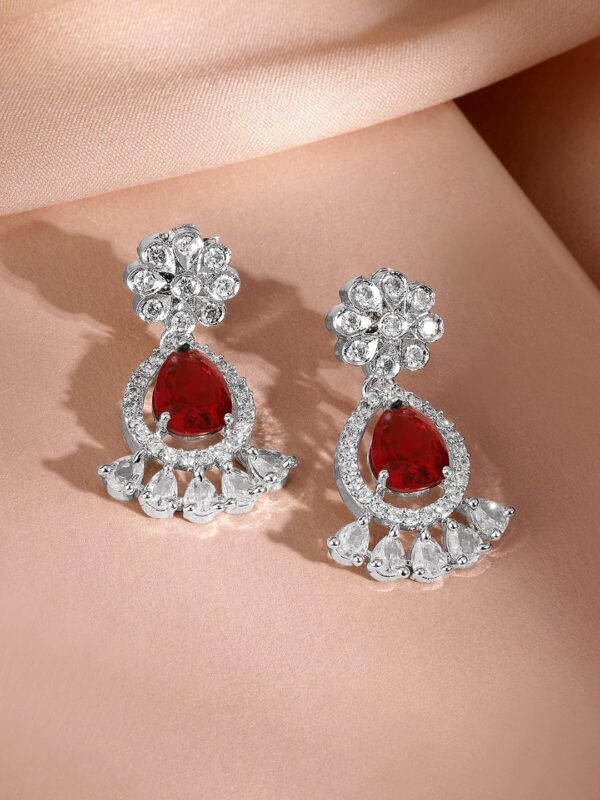 Rhodium-Plated Ruby Red AD & Cubic Zirconia Studded Necklace Set – Ruby Red