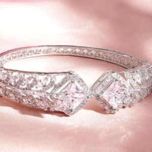 This chic accessory features meticulously placed zirconia stones on a sleek rhodium-plated base, offering a touch of contemporary glamour to elevate your style. Effortlessly versatile, this bracelet is the perfect addition to any ensemble, making a subtle yet impactful statement. Material & Care Dimension : Free Size Material: Brass Net Weight: 18.79 Gram Net Quantity: 1 Bracelet Care Label: It is advisable to avoid contact with water and organic chemicals i.e. perfume sprays. Store jewellery in airtight box. After use, wipe the jewellery with soft cotton cloth.