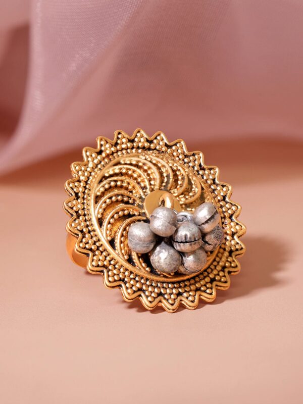 Rhythmic Charisma Oxidized Gold Plated Ghungroo Charm Ring – Gold