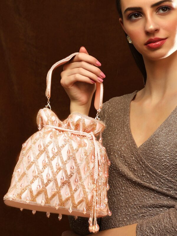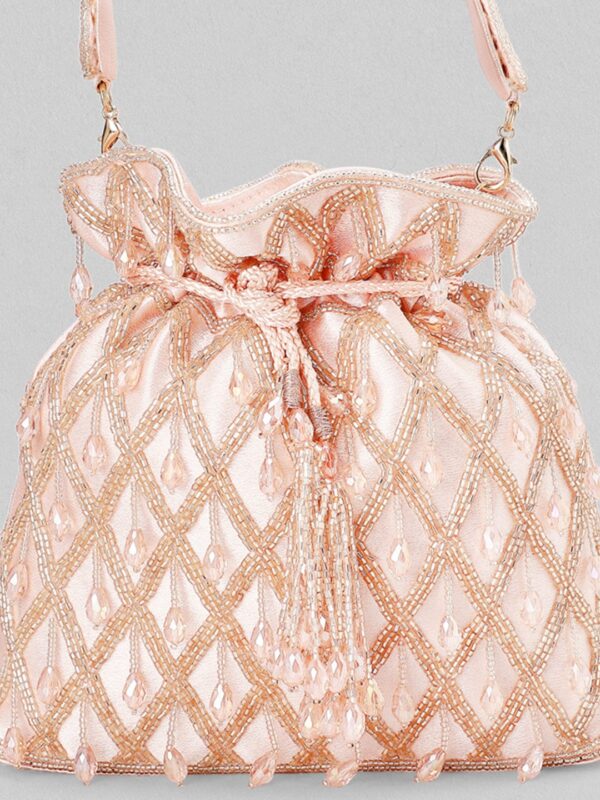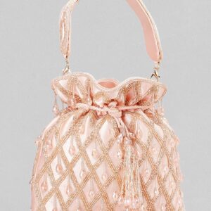 potli bag with the embellishment of stones and elegant designs to add up to your look while adding the extra shine to the moment. Carry it and complete your look with this timeless classic accessory by . Material & Care Size/Length : 30 cm Width: 20 cm Depth : 4 cm Weight (G): 414 G Material: Fabric Collection: Beads