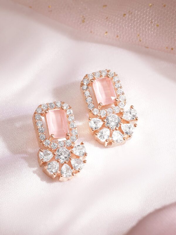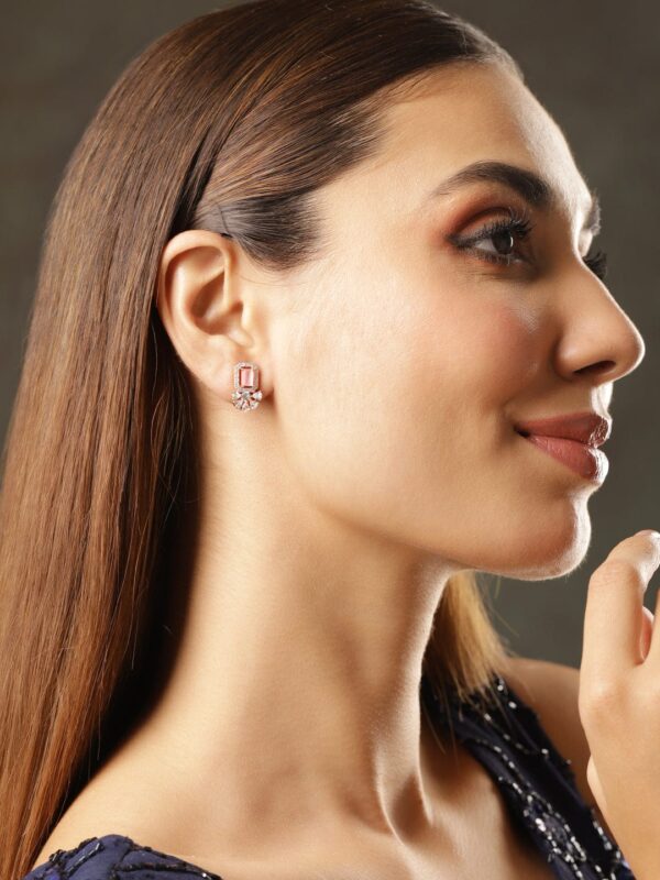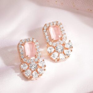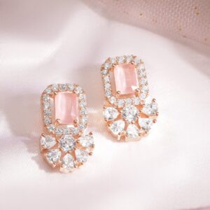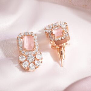 Earrings : Rose gold and pink floral studs, rose gold-plated, has american diamond Occasion : Bring your style to a whole new level with this handcrafted piece of jewellery. When you’re celebrating a special Occasion : – a birthday, wedding, or personal milestone – this piece adds that extra something that makes us feel special and looking our best. Material : & Care Dimension : Length 1.6 cm : Width 1 cm Material :Alloy Weight : 5.48g Net Qnty : 1 Pair Earrings Care Label : It is advisable to avoid contact with water and organic chemicals i.e. perfume sprays. Store jewellery in airtight box. After use, wipe the jewellery with soft cotton cloth.