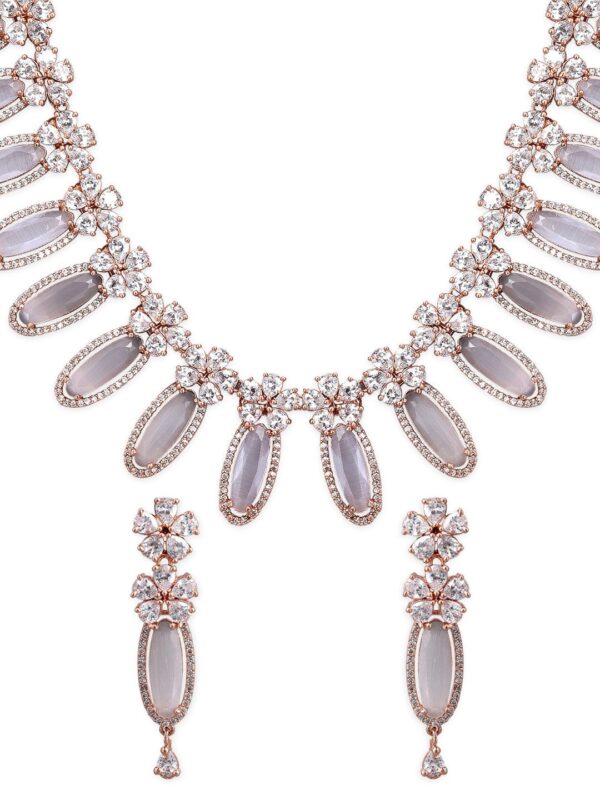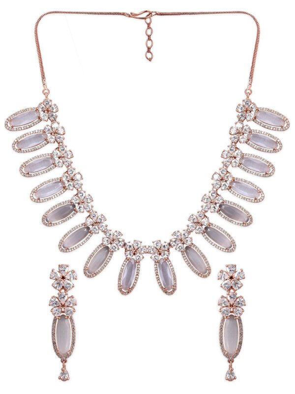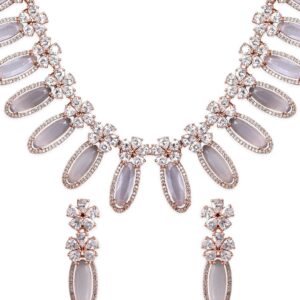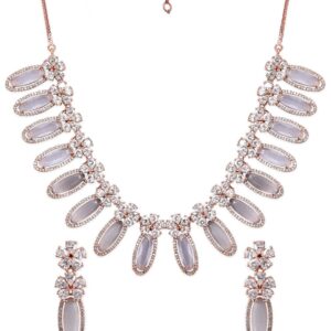 it’s a jewellery set fit for the queens! Exude the royal vibe with this stone studded jewellery set. Consisting of a necklace, matching earrings, this necklace set is crafted from gold-plated brass, stones and beads. Occasion : Bring your style to a whole new level with this handcrafted piece of jewellery. When you’re celebrating a special Occasion : – a birthday, wedding, or personal milestone – this piece adds that extra something that makes us feel special and looking our best. Material & Care Dimension : ¬† Necklace: 45 cm; Earrings: 5.4 cm Material : ¬†Copper Care Label : It is advisable to avoid contact with water and organic chemicals i.e. perfume sprays. Store jewellery in airtight box. After use, wipe the jewellery with soft cotton cloth.¬†