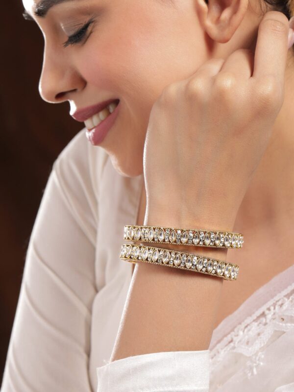 Set of 2 18 K Mehandi Gold-Plated Bangles with Cubic Zirconia & White Stone Details – 2.1