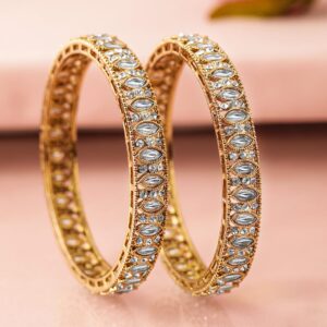 Be the first to review “Set of 2 18 K Mehandi Gold-Plated Bangles with Cubic Zirconia & White Stone Details – 2.1”