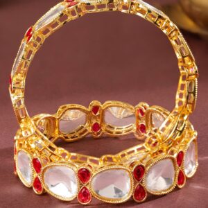 Be the first to review “Set of 2 18K Gold-Plated Crystal White Cubic Zirconia & Ruby Red Stone Studded Bangles – 2.8”