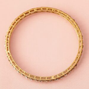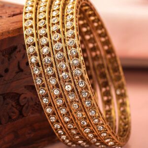 Be the first to review “Set of 4 18 K Mehndi Gold-Plated Crystal White Cubic Zirconia Studded Bangles – 2.4”
