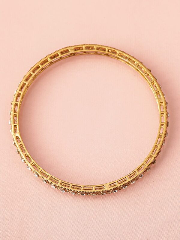 Set of 4 18 K Mehndi Gold-Plated Crystal White Cubic Zirconia Studded Bangles – 2.4