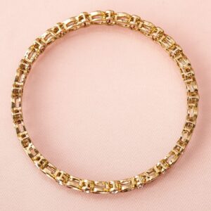 Bangle : Discover the elegance of Set of 4 18K Mehandi Gold-Plated Kundan & Cubic Zirconia Studded Designer Bangles. This piece combines quality craftsmanship with a timeless design, making it perfect for any occasion. Elevate your style effortlessly and enjoy compliments on your refined taste. A must-have addition to your jewelry collection. Occasion : Bring your style to a whole new level with this handcrafted piece of jewellery. When you’re celebrating a special Occasion : – a birthday, wedding, or personal milestone – this piece adds that extra something that makes us feel special and looking our best. Material : & Care Material :Brass Weight : 68.48g Net Qnty : 4 Bangles Care Label : It is advisable to avoid contact with water and organic chemicals i.e. perfume sprays. Store jewellery in airtight box. After use, wipe the jewellery with soft cotton cloth.