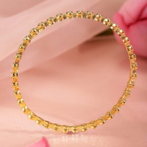 Bangle : This exquisite piece, ‘ Set Of 4 22K Gold-Plated Cubic Zirconia Studded Bangles’, is a perfect blend of elegance and craftsmanship. Designed to captivate, it reflects timeless beauty and intricate detailing. Ideal for special occasions, this accessory adds a touch of sophistication to your look. Made with high-quality materials, it guarantees durability and comfort. Elevate your style with this stunning creation, making you stand out effortlessly. Occasion : Bring your style to a whole new level with this handcrafted piece of jewellery. When you’re celebrating a special Occasion : – a birthday, wedding, or personal milestone – this piece adds that extra something that makes us feel special and looking our best. Material : & Care Material: Brass Net Weight: 50.67 Gram Net Quantity: 4 Bangles Care Label : It is advisable to avoid contact with water and organic chemicals i.e. perfume sprays. Store jewellery in airtight box. After use, wipe the jewellery with soft cotton cloth.