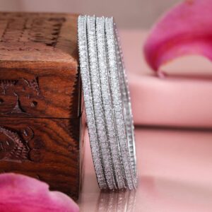 Set Of 4 Rhodium Plated CZ Studded Bangles – 02-Apr