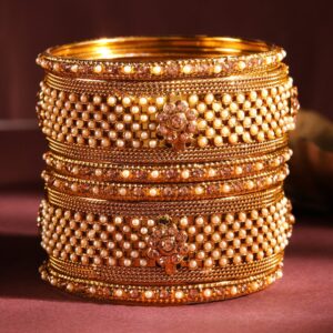 Be the first to review “Set of 6 Gold Plated Pearl & Stone Studded Traditional Handcrafted Bangles – 2.1”