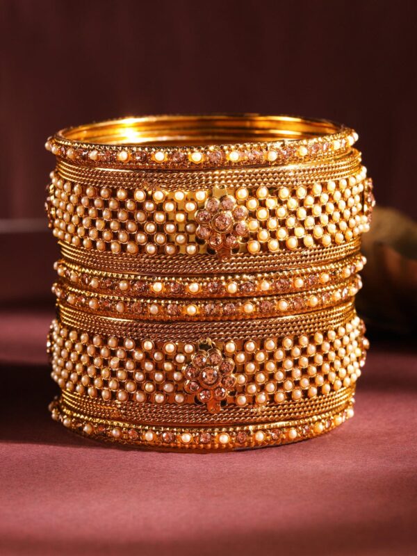 Set of 6 Gold Plated Pearl & Stone Studded Traditional Handcrafted Bangles – 2.1